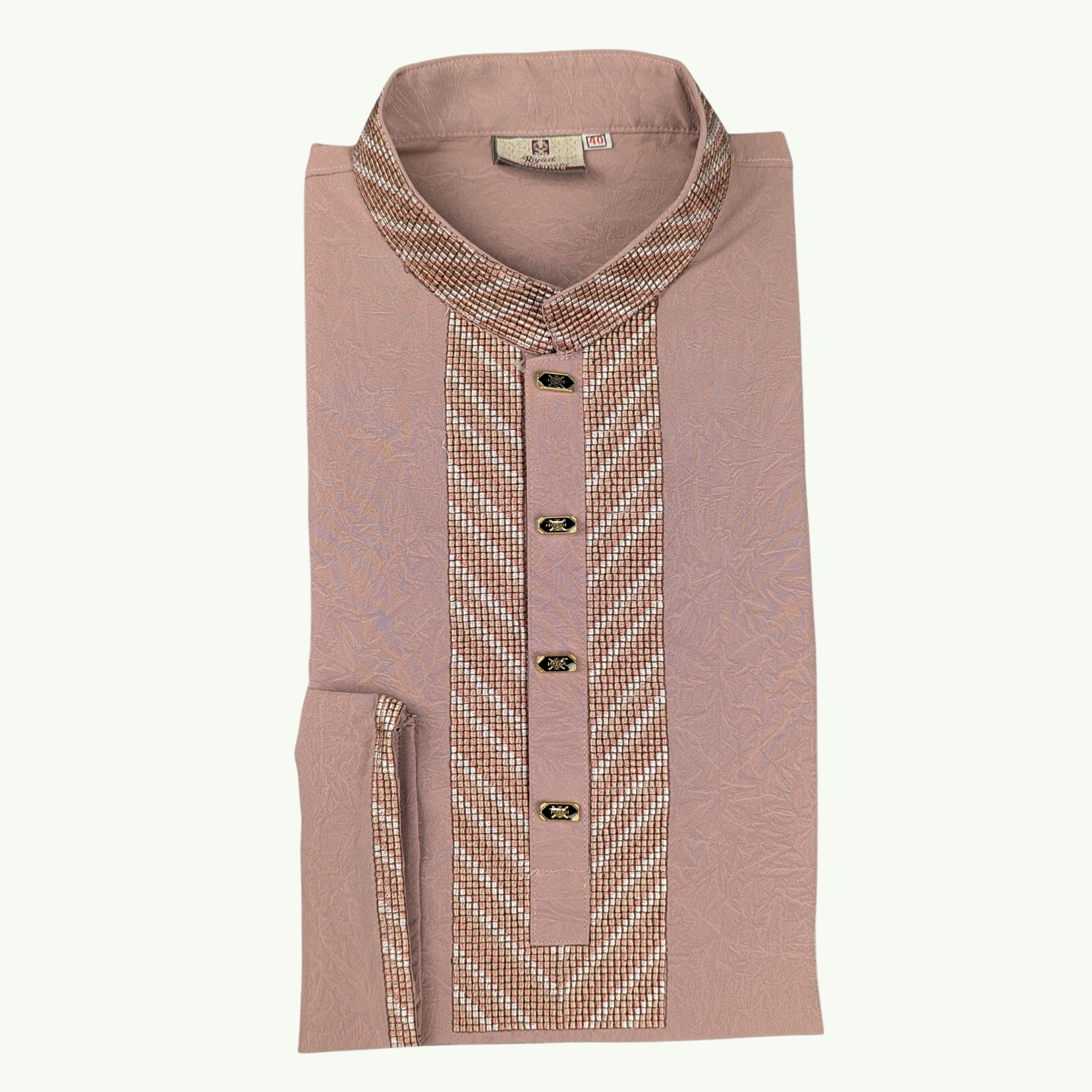 The Mehran Signature Panjabi is crafted from premium China fabric, offering a smooth texture with a structured, elegant fall. The deep Clay Brown tone enhances its royal presence, while the minimal detailing keeps it effortlessly sophisticated.