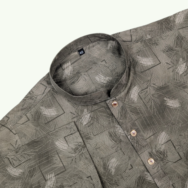 The sophisticated all-over textured print adds depth and character without being overpowering, making it perfect for both casual gatherings and festive occasions. Finished with a clean band collar, premium button placket, and a tailored modern silhouette, this piece delivers a polished traditional look with a fashionable edge.