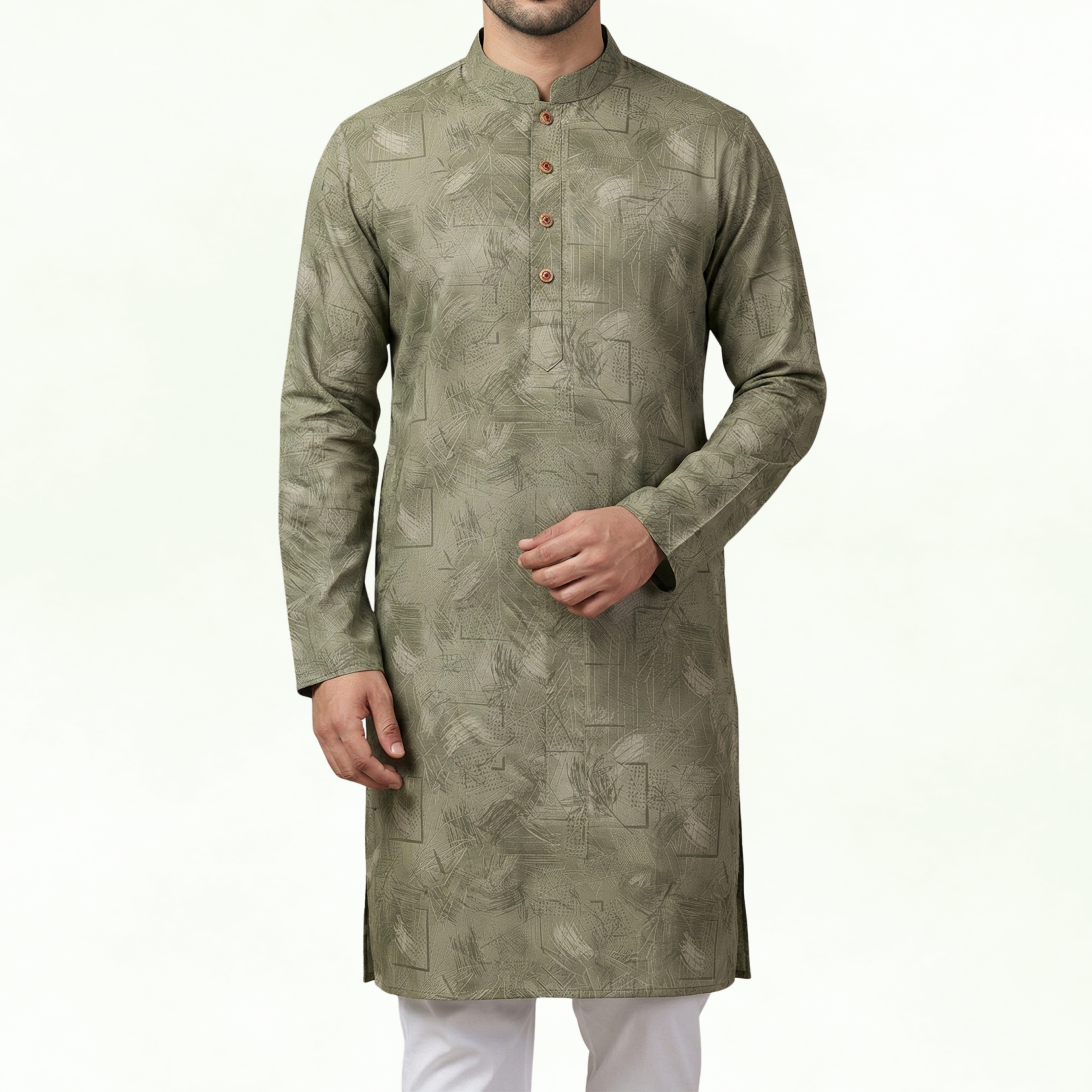 Upgrade your traditional wardrobe with this stylish printed cotton Panjabi, designed for men who value both comfort and contemporary elegance. Made from high-quality breathable cotton fabric, this Panjabi feels soft on the skin while ensuring all-day freshness and ease of movement.