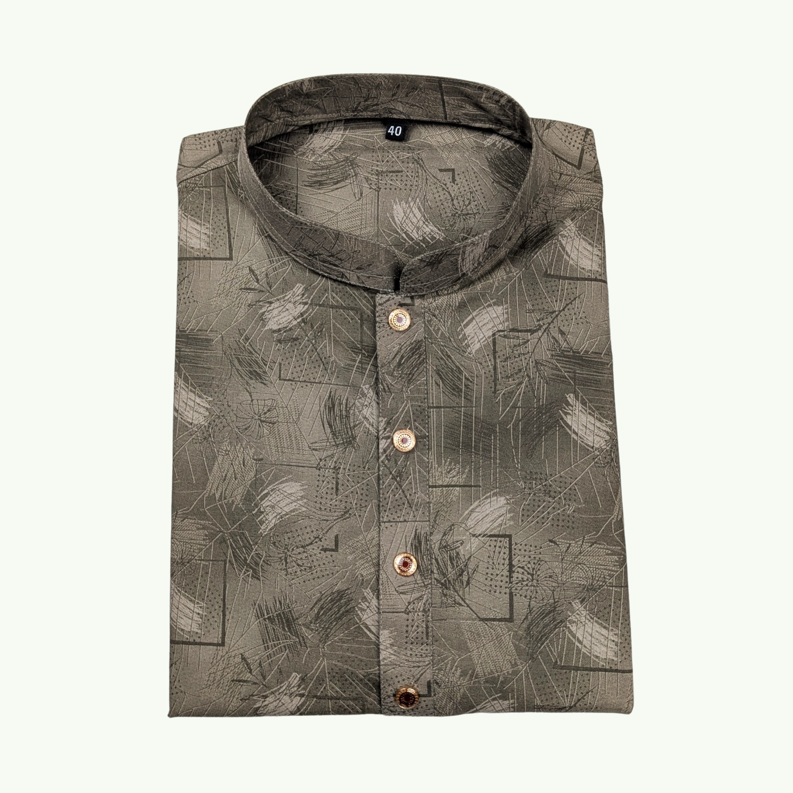 The sophisticated all-over textured print adds depth and character without being overpowering, making it perfect for both casual gatherings and festive occasions. Finished with a clean band collar, premium button placket, and a tailored modern silhouette, this piece delivers a polished traditional look with a fashionable edge.